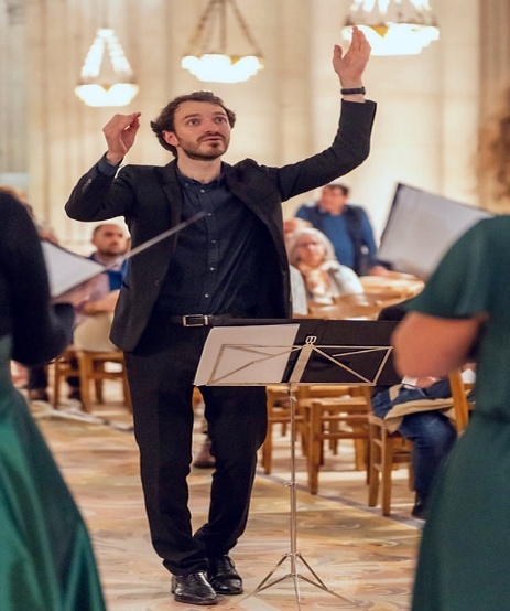Diplômé de philosophie esthétique, il poursuit sa formation musicale à Paris en direction de chœur au pôle supérieur de Paris-Boulogne et en musique médiévale à la Sorbonne, où il reçoit les enseignements de Brigitte Lesnes, Marc Mauillon et Raphaël Picazos. Une longue expérience de la musique liturgique lui donne une sensibilité toute particulière pour la portée spirituelle du répertoire médiéval.